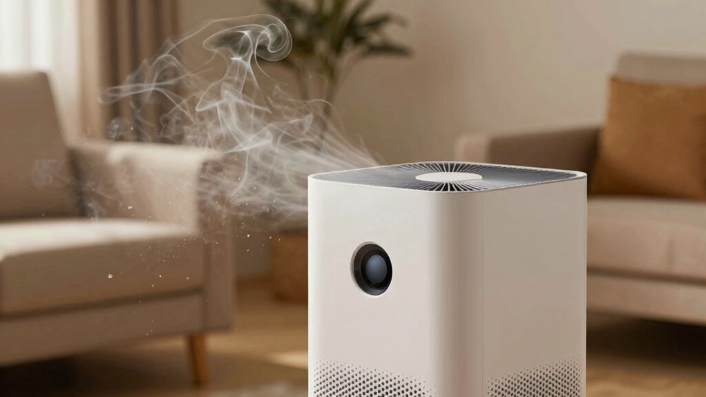 Air purifiers generally don’t emit harmful ozone or chemicals if you choose models with proper certifications. However, some older or cheaper units can produce ozone emissions, which might cause health issues. You should also watch out for chemical leaks from plastic parts or filters containing VOCs. To stay safe, pick a purifier with an ENERGY STAR or CARB certification, and avoid units with high ozone emission ratings.