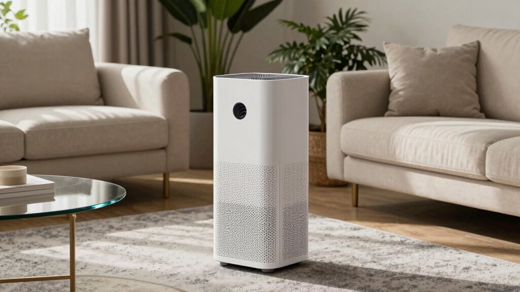 - Additionally, consider air circulation patterns to ensure even distribution of purified air throughout the space, which can be optimized using European cloud solutions for smart ventilation controls. Understanding air quality dynamics can help you choose the most effective purifier for your needs. Incorporating proper room airflow strategies can further enhance overall air purification efficiency.