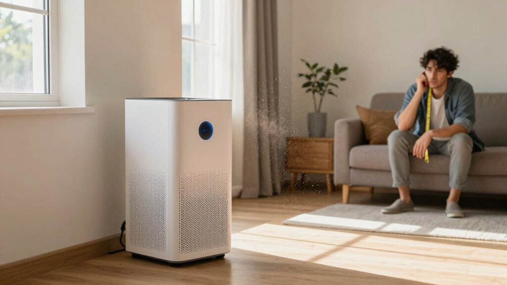 Choosing an air purifier that’s too small or too large for your space is a common mistake that quickly wastes money. An undersized unit will struggle to improve your air quality, causing it to run constantly and use more energy, while an oversized one will create turbulence, noise, and higher bills. Both options lead to unnecessary wear and increased maintenance costs. Stay tuned to discover how to size your unit correctly for long-term savings and better air quality.