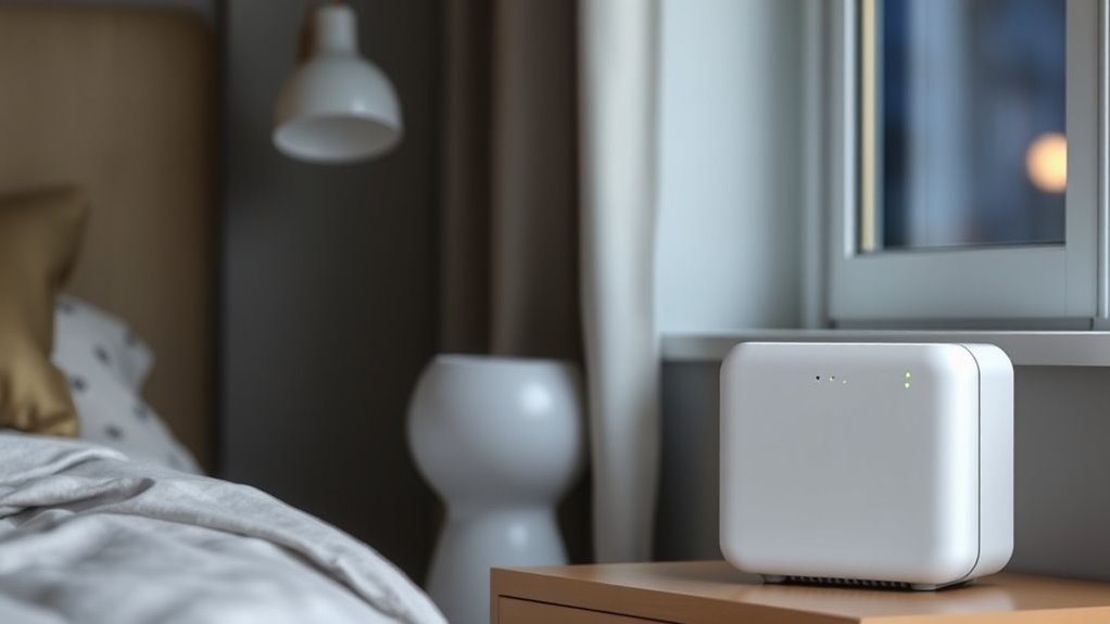 Just as a gentle breeze whispers through a quiet forest, choosing an energy-efficient and quiet purifier guarantees your bedroom remains a sanctuary of peace. By selecting the right model, you not only breathe cleaner air but also embrace a lifestyle that echoes the timeless wisdom of harmony and simplicity. Like the calm after a storm, your restful nights become more restorative, reminding you that sometimes, the best solutions are those that work quietly and efficiently in the background.