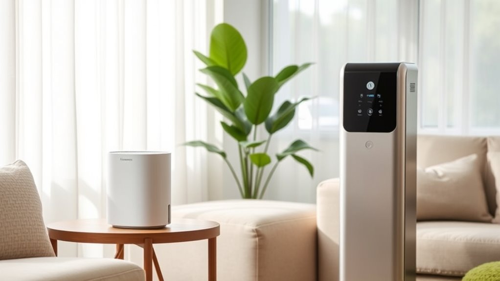 Think of portable air purifiers as your trusty sidekick, ready to follow you from room to room, while stationary units stand like guardians, steadfast in one place. Your choice depends on whether you want flexibility or a dedicated haven. Just as a lighthouse guides ships safely to shore, pick the purifier that best illuminates your space’s air quality needs. Whichever you choose, breathe easier knowing you’re making a smart, proactive decision.