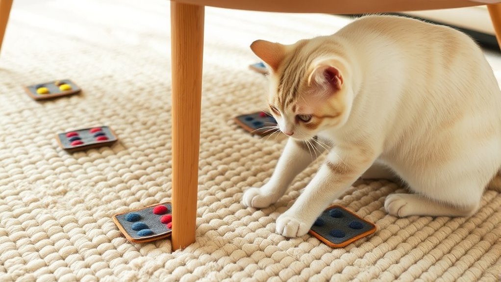If your pet still scratches despite precautions, try DIY remedies like bitter sprays or double-sided tape to deter scratching. Also, consider behavioral training to redirect their attention and reduce stress. Overcoming concerns about effectiveness, these methods often work well when combined with patience. Consistent training and alternative deterrents can protect your furniture while addressing underlying behavioral issues, making your home scratch-free and more comfortable for your pet.