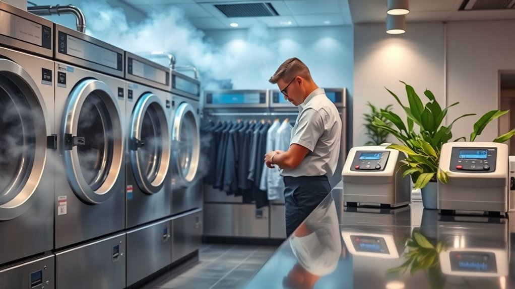 Cleaning often consumes more water than we realize, but you can make a difference by adopting water-saving methods. One effective approach is exploring dry cleaning options, which substantially reduce water use compared to traditional methods. Dry cleaning employs specialized solvents and eco friendly detergents that clean clothes effectively without soaking them in water. This not only conserves water but also minimizes wastewater production and energy consumption. When choosing dry cleaning services, look for those that prioritize energy efficient equipment, which further reduces environmental impact. Modern dry cleaning machines are designed to operate with less water and electricity, aligning with sustainable practices. Additionally, some dry cleaning companies utilize environmentally friendly solvents that further lessen chemical and water use.