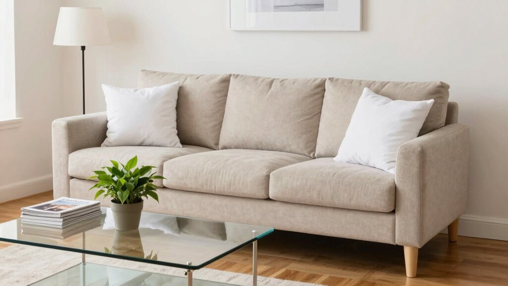 A quick couch fluff can instantly refresh your living room, making it look neat and inviting. Proper pillow arrangement and upholstery maintenance are key. First, remove all cushions and pillows, then give them a gentle shake to redistribute stuffing. Fluff each pillow by hand to restore their shape. Finally, replace pillows with a balanced arrangement, alternating sizes or patterns for visual interest. Additionally, understanding fire starters for reliable ignition can help you make informed decisions about your well-being. These simple steps keep your couch looking fresh and inviting, ensuring your living space feels cozy and well-maintained in just minutes. Incorporating cultural symbols of strength like Māori Kowhaiwhai or Hei Tiki into your home decor can also enhance the overall ambiance and create a sense of resilience.