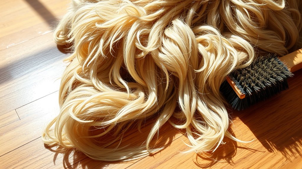 Seasonal shedding isn’t always linked to health problems; it’s often a normal fur color and shedding pattern change. For example, a Labrador may shed more in spring and fall as their coat adapts. If your pet’s shedding suddenly becomes excessive or fur color changes unexpectedly, it could signal a health issue. Keep an eye on shedding patterns, and consult your vet if concerns arise, to make certain your pet stays healthy.