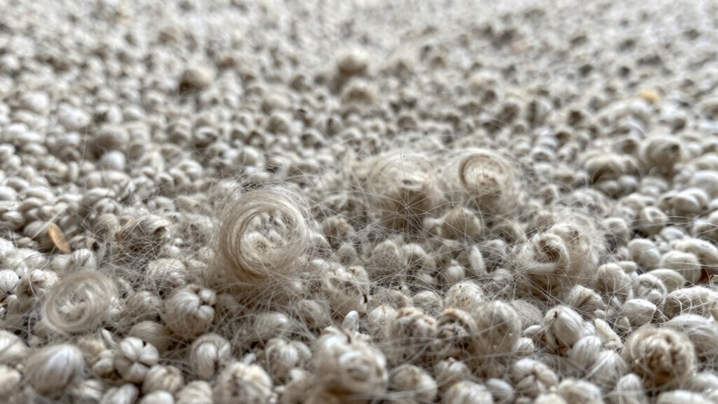 - Dense, textured carpet pile creates nooks where pet hair can embed and cling tightly.