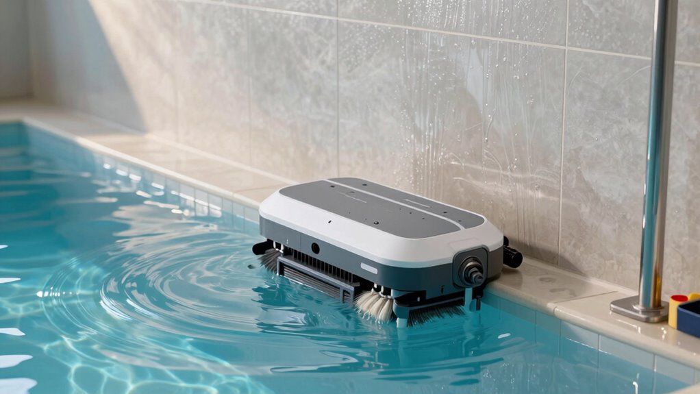 Ever wondered how algae growth impacts your pool cleaner’s ability to climb walls? Algae creates a slippery surface, making it harder for your cleaner to grip and ascend. To minimize algae, focus on water chemistry and proper pool maintenance. Consider these steps: