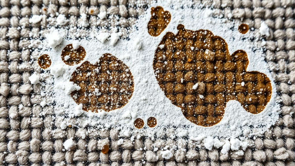 Additionally, choosing a vacuum cleaner with high suction power can help remove the powder more effectively, especially on deep fibers. It’s important to note that these household solutions are just one part of stain removal techniques. If the stain persists, you might need to try cleaning product comparisons to find an appropriate commercial stain remover. Always test any product on a small, inconspicuous area first to avoid damage. Remember, patience and proper technique are key. This simple method using talcum powder or cornstarch is cost-effective, quick, and eco-friendly—making it a smart first step before resorting to stronger cleaning products. With a little effort, you can effectively remove greasy stains and keep your rug looking fresh.