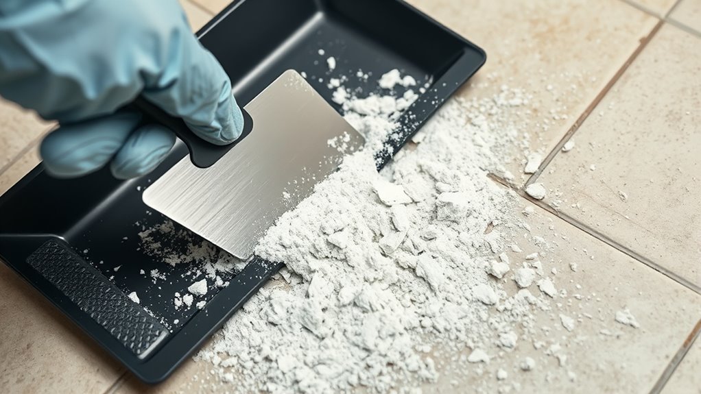 When faced with a solid mess, using a putty knife and dustpan can make cleanup quick and efficient. These tools are surprisingly versatile for removing stubborn debris, whether it’s dried paint, dried glue, or hardened food spills. The key lies in mastering scraper techniques that maximize your efficiency and prevent damage to surfaces. To start, select the right putty knife—consider the size and flexibility based on the mess you’re tackling. A sturdy, flat-edged scraper works well for scraping off dried or hardened materials from smooth surfaces without gouging or scratching. When you’re ready to clean up, hold the putty knife at a low angle, almost parallel to the surface, and apply gentle, steady pressure to lift the debris. Using scraper techniques that involve controlled, deliberate strokes prevents you from applying excessive force that might damage the surface beneath. Additionally, maintaining the right scraper technique can greatly improve your cleanup efficiency. As you work, remember that effective cleanup strategies involve not only removing the debris but also managing the mess’s residue. After loosening the solid bits, slide the putty knife underneath to lift and pry them away. For stubborn spots, you might need to reapply pressure or change angles, but always keep your movements smooth and controlled. Once the bulk of the mess is loosened, use a dustpan to collect the debris. Angle the dustpan slightly to catch the debris efficiently, and don’t forget to keep the edge flush against the surface to prevent debris from slipping underneath. A well-placed dustpan makes it easier to gather everything in one sweep, reducing the chance of spreading the mess. Incorporating these scraper techniques into your cleanup strategies streamlines the process and minimizes mess spreading. For larger or more solid messes, work systematically by sectioning off the area and tackling each part thoroughly with the putty knife before sweeping up with the dustpan. Also, consider using a slightly damp cloth or vacuum for finer debris afterward, ensuring a cleaner finish. Sharpening your scraper skills with practice leads to quicker, more effective cleanups and less frustration. Remember, patience and precision are vital; rushing can cause damage or leave debris behind. With the right technique, your cleanup becomes less of a chore and more of a straightforward task. Using a putty knife and dustpan isn’t just about removing messes—it’s about applying smart scraper techniques and cleanup strategies that save you time and effort while protecting your surfaces.