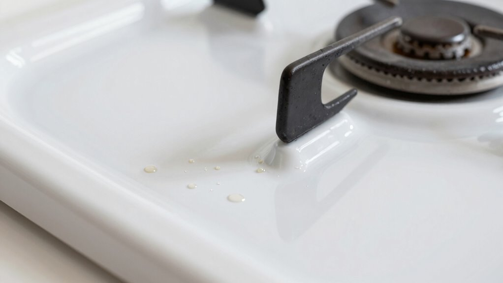 As soon as you notice a grease spill, it is crucial to act quickly to prevent stains from setting. Swiftly grab your cleaning tools—preferably paper towels, a clean cloth, or absorbent material—and gently blot the excess grease. Avoid rubbing, as this can push the stain deeper into the fabric or surface. Stain prevention hinges on removing as much grease as possible immediately. Once you’ve blotted away the excess, apply a small amount of dish soap or degreaser directly to the spot, then let it sit for a few minutes. Use a clean cloth to gently work the solution into the stain. Quick action minimizes grease penetration, making subsequent cleaning easier and more effective. Remember, timely response is key to avoiding stubborn stains.