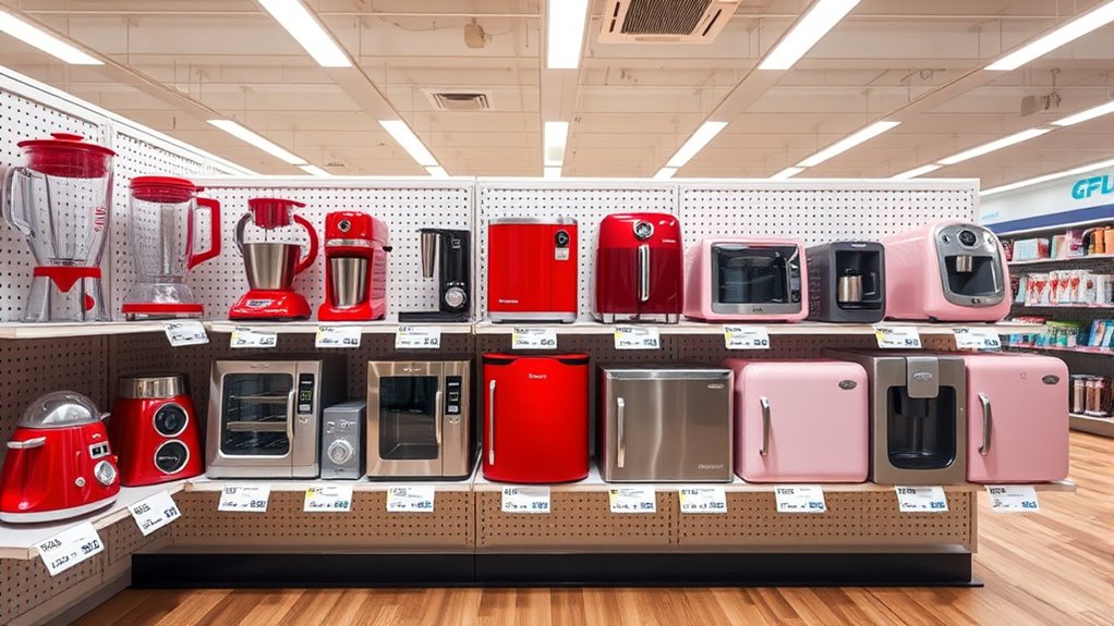 Cheap appliances can be great for small spaces and quick tasks, but I’ve found they often don’t last as long or perform as well as pricier models. They’re usually more limited in capacity and features, which can mean more repairs or replacements over time. Still, if you want affordable solutions for casual use, they can be worth it. If you want to see what experts say and how to choose wisely, keep exploring the details.