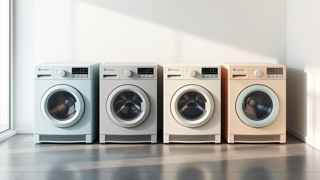 Have you ever wondered how to get your laundry done while minimizing energy and water bills? Many budget washing machines now feature technologies like Cold Clean, which clean effectively using less electricity. Water efficiency is just as important; machines with adjustable water level settings let you tailor water use based on load size, reducing waste. ENERGY STAR certified models typically use up to 50% less energy and 30% less water than non-certified options, saving you money in the long run. Multiple wash cycle choices allow you to customize water and energy consumption depending on fabric type and soil level. Features like eco-friendly cycles and load-sensing technology further help in minimizing resource use, making it easier to save money without sacrificing cleanliness.