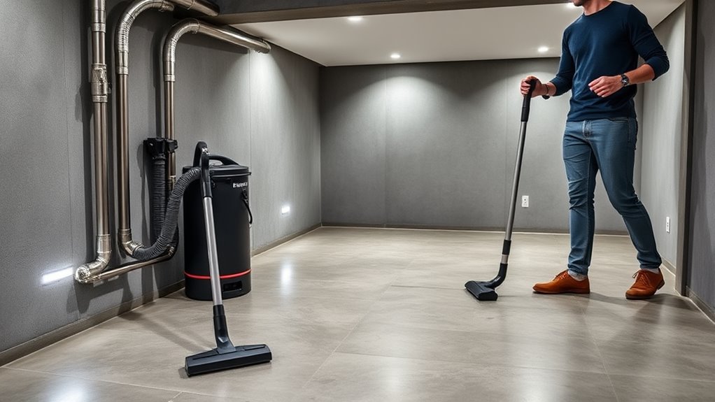 Maintaining your central vacuum system is essential for consistent performance and longevity. I recommend regularly checking and replacing the vacuum bag or washable filter to keep suction strong and air quality high. Scheduling periodic inspections of the piping helps catch leaks or blockages early, preventing performance drops. It’s also important to clean or replace filtration components as per the manufacturer’s guidance to avoid dust buildup that can reduce efficiency. Additionally, servicing the motor and electrical parts according to the maintenance schedule can considerably extend the system’s lifespan. Ultimately, keep the inlet valves and hoses free of obstructions to ensure smooth airflow and minimize system strain. Proper maintenance not only keeps your system running at peak performance but also helps prevent costly repairs down the line.