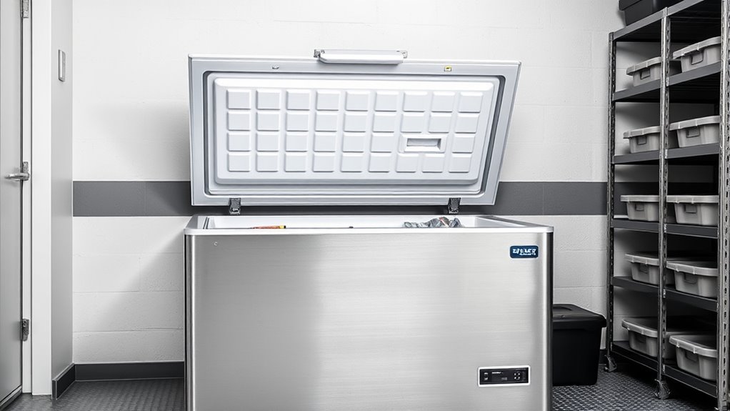 Maintaining a chest freezer in your garage becomes much easier when you select a model designed with user-friendly features. Look for a freezer with a front-mounted drain to simplify defrosting and cleaning, saving you time and effort. Removable baskets or shelves help keep things organized and make routine maintenance easier. A durable, corrosion-resistant interior surface ensures cleaning is straightforward and keeps your freezer looking new longer. Choosing a model with a manual defrost feature can be more straightforward and cost-effective than automatic systems, giving you better control. Additionally, accessible control panels and filters make adjusting temperatures and performing routine checks hassle-free. These features combine to make maintenance less of a chore, so your freezer stays efficient and reliable with minimal effort.