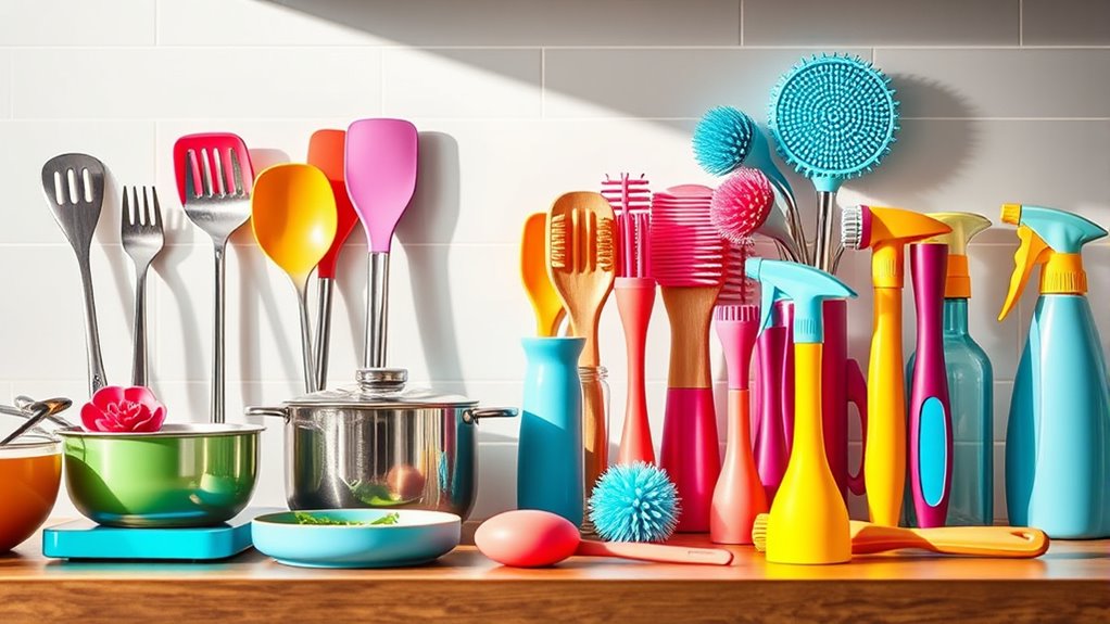If you’re looking for the best cook and cleaning kits to make kitchen tasks easier, I’ve found top options like Weiman, Cerama Bryte, and Affresh that are great for glass, ceramic, and induction surfaces. These kits include cleaners, scrapers, pads, and safety tools to tackle everything from everyday spills to tough, burned-on stains. With the right kit, you’ll keep your surfaces shining and protected. Keep exploring to find out which ones suit your needs best.