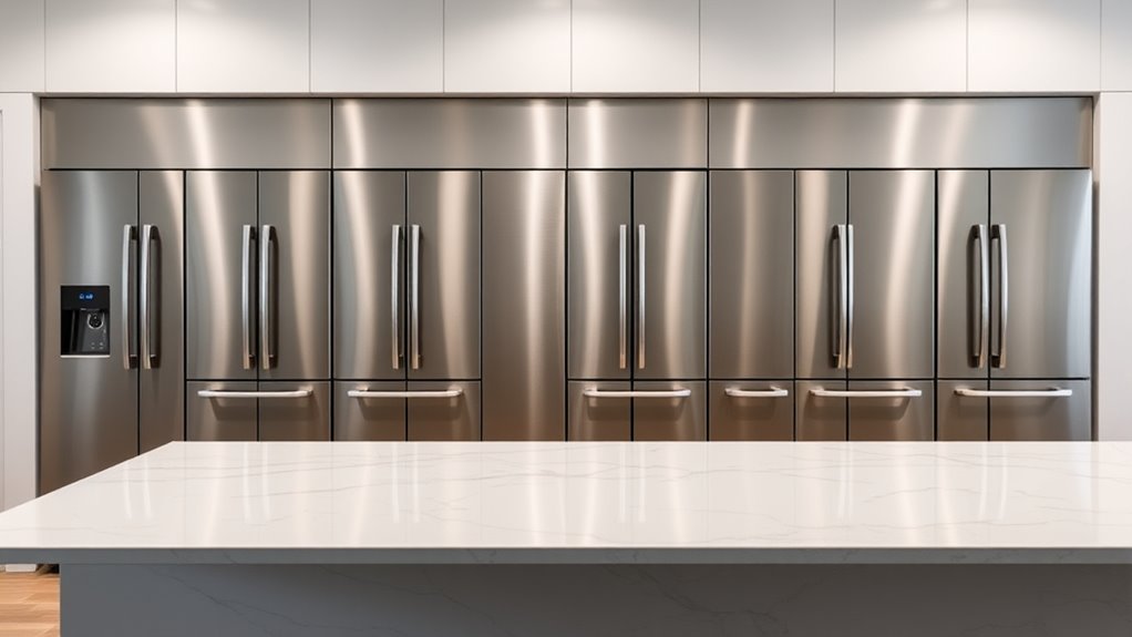 Have you ever noticed how the exterior design of a refrigerator can transform the look of your kitchen? Counter-depth models typically feature a sleek, flush exterior that aligns perfectly with cabinetry, creating a seamless, integrated appearance. Many come with stainless steel finishes that are fingerprint-resistant, helping maintain a modern, clean look with minimal effort. Reversible doors and customizable handles offer flexibility, making it easier to match your existing kitchen style. Built-in control panels or display screens are designed to blend into the door, maintaining a streamlined aesthetic. Since these units sit level with your countertops, they enhance overall kitchen symmetry and visual harmony. Choosing a refrigerator with an exterior design that complements your space can truly elevate your kitchen’s style and functionality.