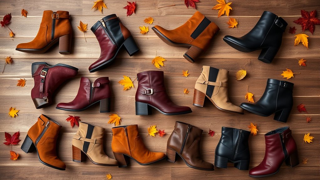 • Discover ankle boots featuring modern designs, including dual zippers and vintage-inspired accents, perfect for chic fall looks.