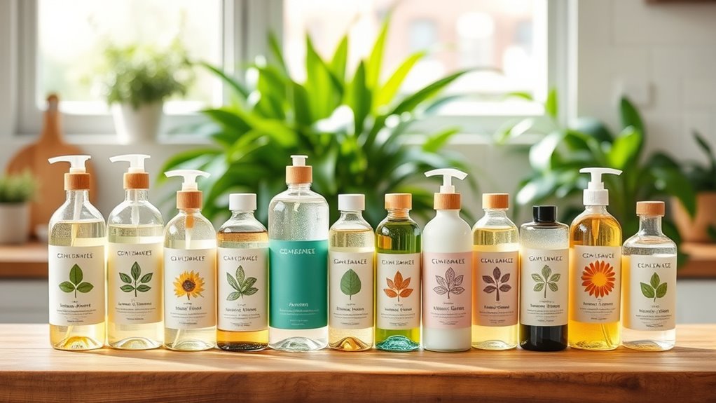 Plant-based ingredients are generally safe for children and pets, acting like gentle guardians of your home’s health. I always feel reassured knowing these natural cleaners are free from harsh chemicals, making my space safer for loved ones. However, I remind myself that even natural substances can cause allergies or sensitivities. Always read labels carefully, keep products out of reach, and supervise use to keep everyone safe and happy.