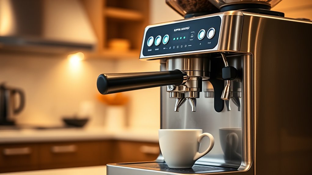 When selecting an espresso machine with a built-in grinder, ease of cleaning becomes a key consideration. Machines with removable water tanks, drip trays, and grinder parts make cleanup straightforward—just rinse and reassemble. Automatic cleaning cycles and descaling functions further reduce manual effort, keeping the machine in top shape without much fuss. Dishwasher-safe components, like drip trays and milk pitchers, speed up routine cleaning. Some models even include built-in brushes or tools to thoroughly clean grinder burrs and coffee pathways, preventing clogs and residue buildup. Clear user interfaces and indicator lights are helpful reminders to perform regular maintenance, ensuring consistent performance. Overall, a machine designed with easy cleaning in mind saves time and keeps your coffee experience hassle-free.