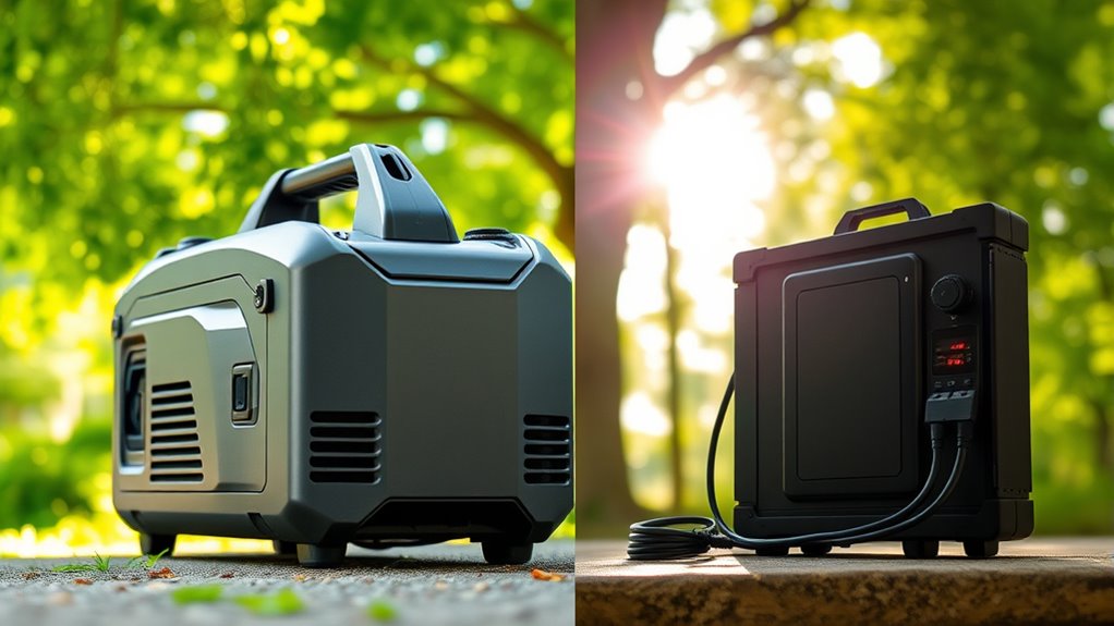 Think of noise levels like a whisper versus a shout. Battery systems are the quiet companions, humming softly or not at all, perfect for peaceful environments. Portable generators, however, can roar like a beast, especially under load, making them less ideal where silence matters. If you crave serenity, batteries are your best bet; if power on demand is more important than noise, generators can serve you better.