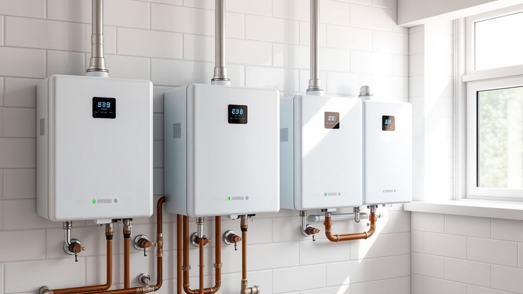 I’ve looked into the top heat pump water heaters for 2025 that help save energy and cut costs. These include efficient, space-saving models like the Vevor Electric Tankless Heater, FOGATTI’s indoor tankless units, and advanced heat pump systems with Wi-Fi control. They’re perfect for whole-home use, outdoor setups, or quick hot water needs. If you want to find the best one for your situation, stick around — I’ll share more details soon.