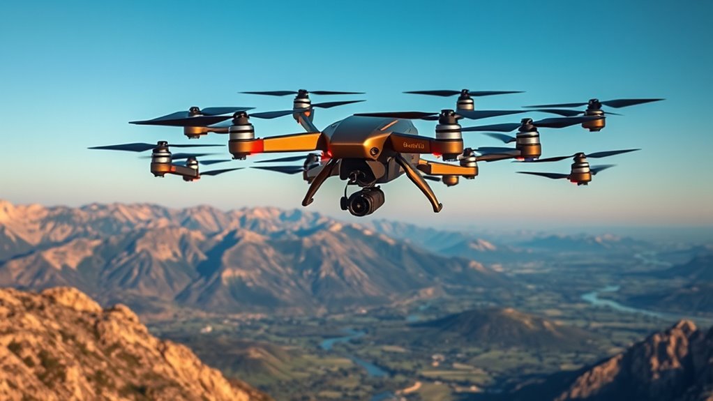 High-end drones are distinguished by their advanced camera capabilities, which are vital for capturing professional-quality images and videos. Many feature sensors that support 4K, 6K, or even 8K resolution, ensuring sharp, detailed footage. The number of megapixels, like 48 MP or 100 MP, directly impacts the clarity of still photos. Stabilization is essential, so look for models with 3-axis or 4-axis gimbals to keep footage smooth, even in windy conditions or during fast movements. Some drones support HDR video modes and RAW photo formats, giving you greater dynamic range and editing flexibility. Additionally, features like multiple lenses or optical zoom expand creative options. Overall, camera quality and resolution are key factors that determine if a drone can meet your professional or enthusiast needs.