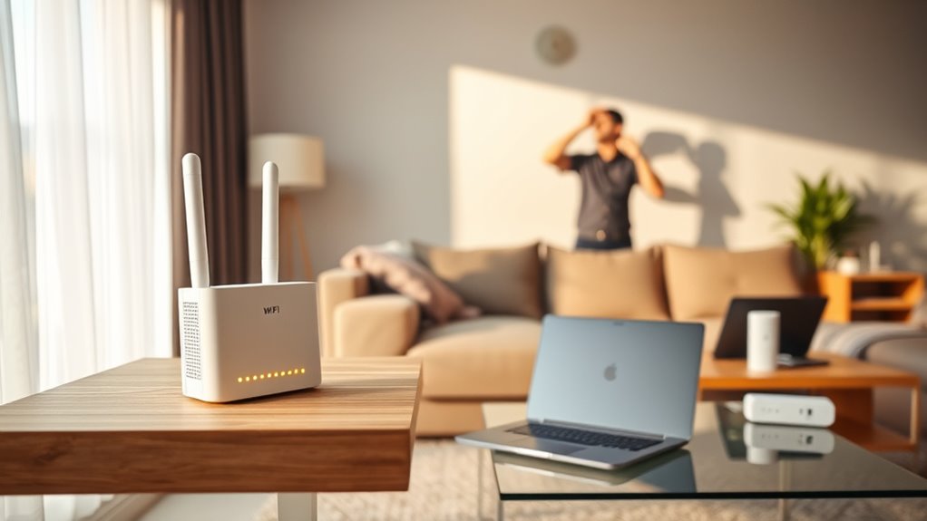 If your Wi-Fi keeps dropping out or your signal barely reaches certain rooms, it’s time for a Wi-Fi extender. I notice slow speeds or buffering during streaming, especially far from the router. When multiple devices struggle to connect or your internet feels sluggish across your home, an extender helps boost coverage. These signs tell me it’s worth investing in one to guarantee a strong, reliable connection everywhere.