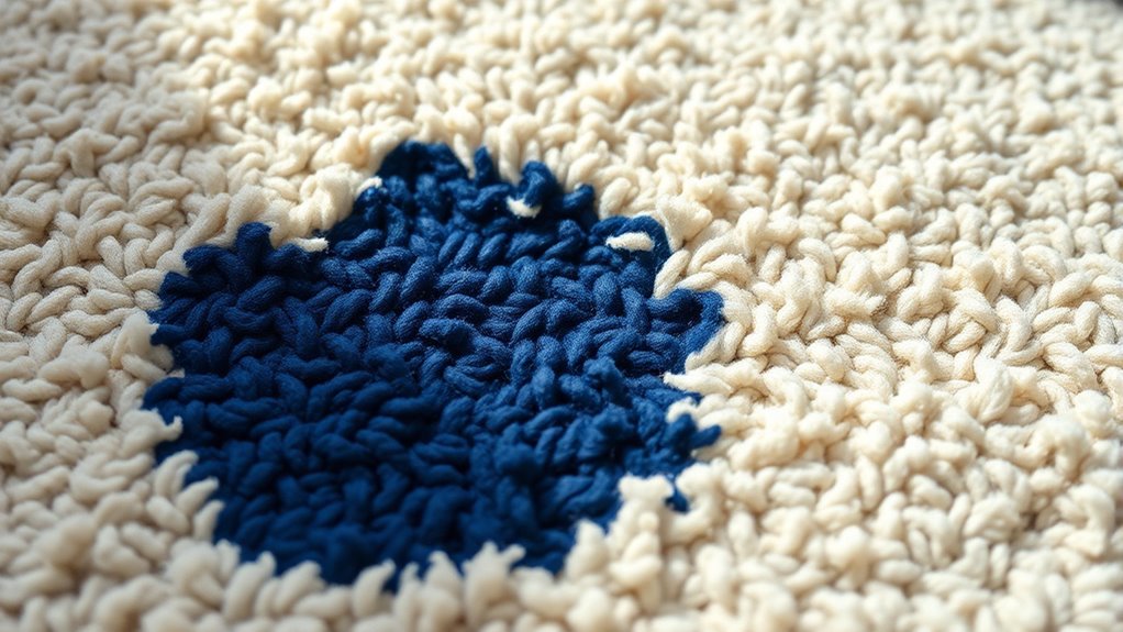 Different carpet materials react differently to ink removal methods, so it’s essential to consider their specific sensitivities before treating stains. Wool carpets are delicate and can be damaged by harsh solvents or excessive moisture, so gentle cleaning solutions are best for ink stains. Synthetic fibers like nylon and polyester are more resistant to chemicals, allowing the use of stronger stain removers without risking damage. Natural fibers such as cotton or silk tend to absorb ink more deeply and are more prone to discoloration or deterioration during cleaning. Always check the manufacturer’s care label before applying any treatment—this helps ensure you don’t void warranties or harm the fibers. Knowing your carpet’s material helps you choose the safest, most effective method to remove ink without causing damage.