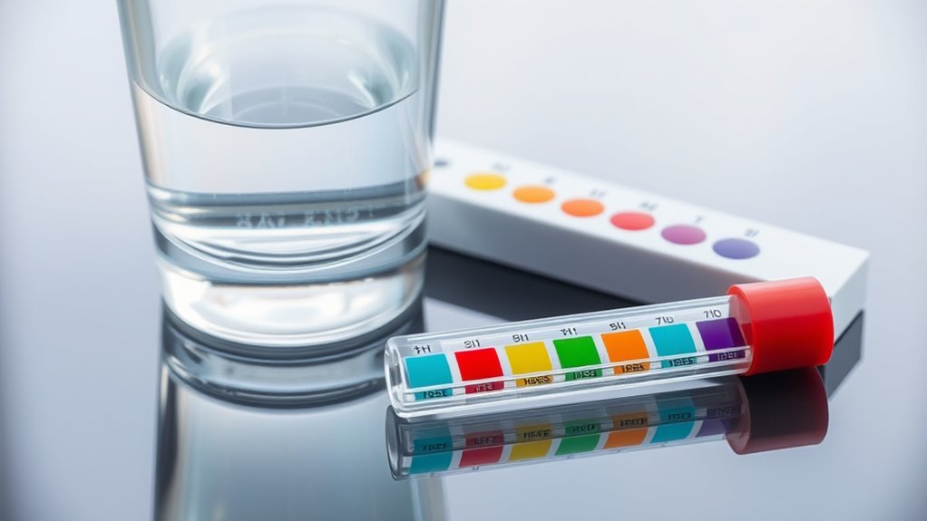 Proper storage is key to maintaining the accuracy of your water test results. I always keep my test strips in sealed, airtight containers with desiccants to prevent moisture damage, which can compromise their effectiveness. It’s crucial to pay attention to the expiration date printed on the packaging because chemical reagents may degrade over time, leading to unreliable readings. I avoid exposing my test kits to direct sunlight, heat, or humidity, as these conditions can affect reagent stability. After each use, I reseal the container immediately to preserve the strips’ effectiveness. Regularly checking the manufacturer’s recommended shelf life helps ensure I get accurate and consistent water hardness readings. Proper storage isn’t just about keeping the strips safe; it’s about ensuring reliable, precise results every time.