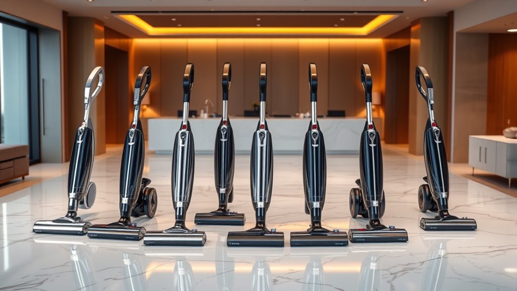 Like a well-tailored suit, a stylish vacuum doesn’t sacrifice function for form. I’ve found that many luxury vacuums blend sleek design with powerful performance seamlessly. These models are engineered with advanced technology, ensuring they handle pet hair and dirt efficiently. So, no, you don’t have to compromise on cleaning power for style; the best luxury vacuums prove that elegance and effectiveness can go hand in hand.