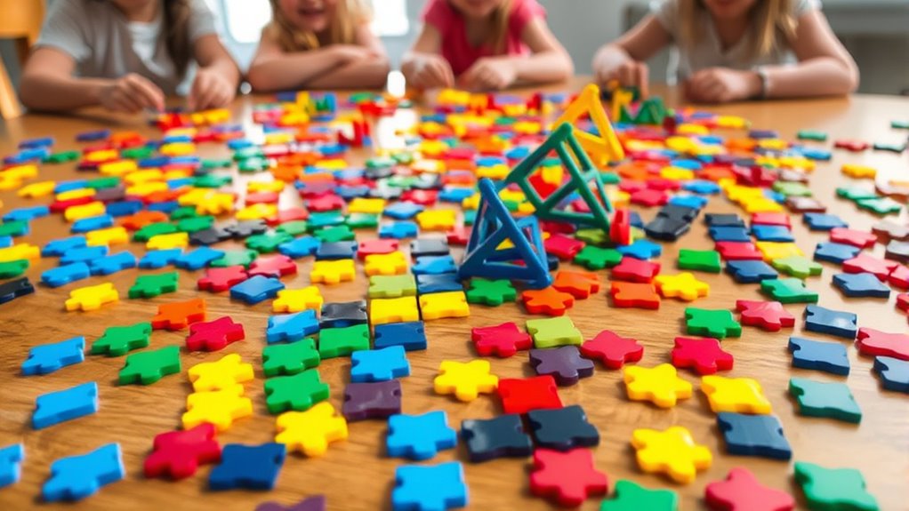 Choosing magnetic tiles for kids involves careful consideration of safety standards and materials, as they play a crucial role in ensuring a safe play experience. Both Magna-Tiles and Connetix are crafted from food-grade, non-toxic ABS plastic, so I feel confident letting my kids play with them. Their frustration-free magnetic connections allow little hands to easily pull apart and reassemble the pieces safely. Plus, the magnets are securely embedded with rivets, minimizing any choking hazards. With compliance to international safety standards like ASTM and CE certifications, I know these toys are safe for children ages three and up. Additionally, the materials are free from BPA, phthalates, and latex, reducing any risks of allergic reactions during playtime.
