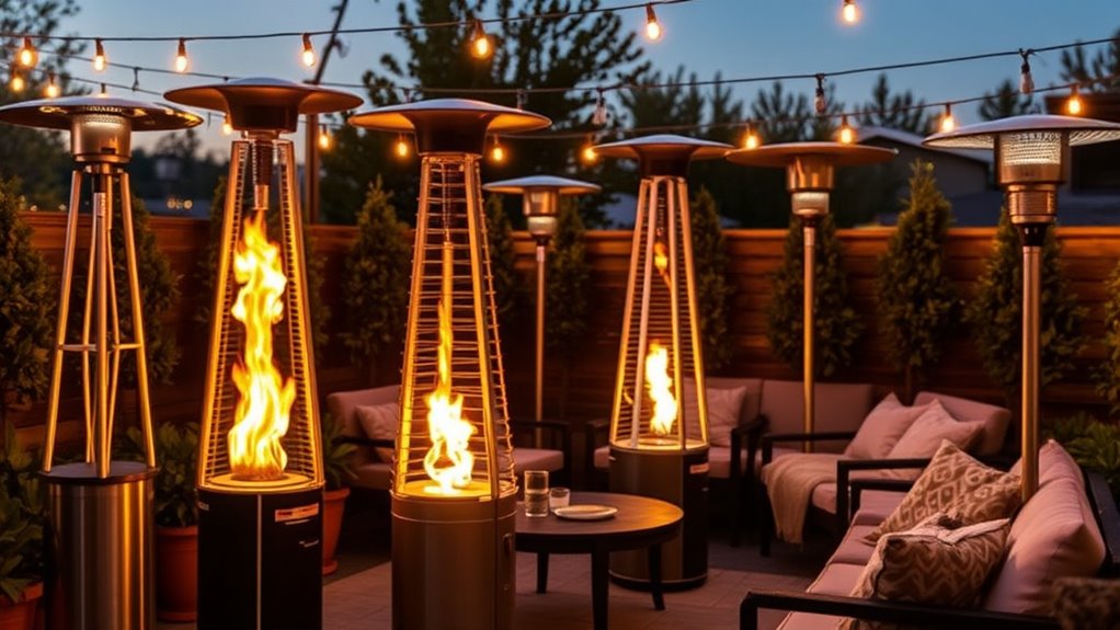 - Match heater size and heat capacity to your space needs, balancing efficiency, safety, and convenience for cozy outdoor gatherings.