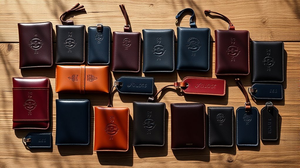 When it comes to selecting a premium leather passport holder set, the color and personalization options can really make a difference. I love that many sets offer classic shades like black, brown, and navy, alongside vibrant or pastel hues to match my style. Choosing the right color can affect the overall elegance; neutral tones work great for formal travel, while brighter colors add a fun touch for casual trips. Plus, personalization features like monogramming or embossing let me add my initials or a unique design, enhancing both aesthetics and practicality. This way, I can easily identify my documents in busy airports, and coordinating with family or friends becomes a breeze. It’s all about expressing my personality while staying organized!