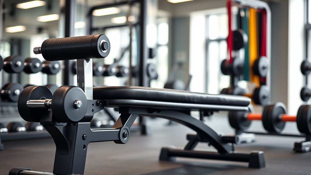 Safety features are essential when selecting a premium weight bench because they directly impact how securely I can perform my workouts. I look for secure locking mechanisms like pin locks or C-lock systems to prevent accidental adjustments. Non-slip, padded foot supports and a stable base design help prevent slipping or wobbling during lifts. I also check that the frame and adjustment components are made from high-strength, durable materials that support heavy loads without shifting or collapsing. Features like adjustable lock pins, secure lock cylinders, or serrated locking mechanisms keep the backrest and seat firmly in place. Additionally, clear safety instructions and appropriate weight capacity ratings ensure I understand the limits and reduce the risk of injury. These safety features give me confidence during intense training sessions.