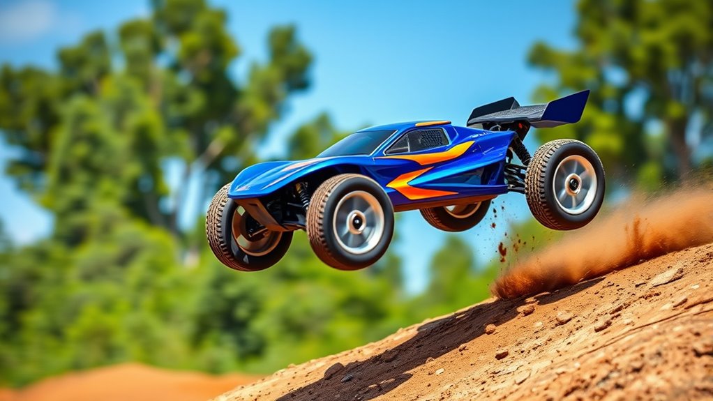 Long battery life is key to enjoying more uninterrupted playtime with your remote control car or truck. It allows me to race longer without constantly recharging, making the experience more exciting. Some models can run up to 70 minutes on a single charge, which is fantastic for extended sessions. The type of batteries, like Li-ion or Ni-Cd, also matters. I’ve found Li-ion batteries offer better energy density, meaning longer run times and shorter recharge periods—usually between 1 to 3 hours. Battery capacity, measured in mAh, directly impacts how long I can drive before needing a recharge. Proper maintenance, such as regular charging and avoiding over-discharge, is essential for keeping the batteries performing at their best and ensuring my RC vehicle stays ready for the next race.