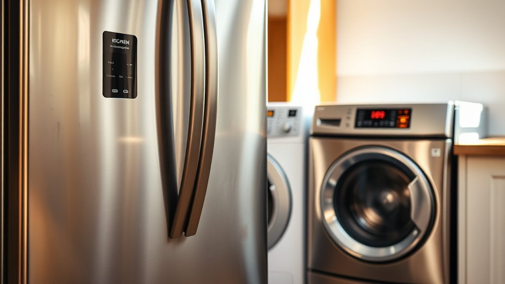 When considering whether to repair or replace an appliance, technological obsolescence plays a crucial role. As technology advances, older appliances often lag behind in features, efficiency, and compatibility with modern smart home systems. If your appliance can’t integrate with current energy-saving technologies or lacks essential safety updates, it’s a sign it’s becoming outdated. Additionally, repair parts for outdated models may be difficult to find or costly, making repairs less practical. Upgrading to a newer model with advanced features might be more economical in the long run, especially if it improves energy efficiency and safety standards. Ultimately, if your appliance is markedly outdated, investing in a new one could save you money and hassle, ensuring you benefit from the latest technology and standards.
