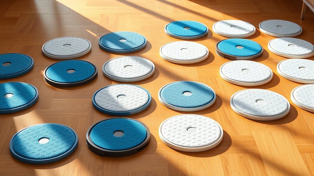 When it comes to selecting robot vacuum mopping pads, reusability and maintenance play a crucial role in both cost-effectiveness and convenience. I’ve found that reusable mop pads can be washed and used multiple times, which cuts down on ongoing costs and helps reduce waste. To get the most out of them, I make sure to clean and dry them regularly, extending their lifespan and effectiveness. I also prefer microfiber pads since they enhance water absorption and improve stain removal, leading to a better clean overall. Remember to choose pads that are machine washable and compatible with your vacuum model, as this simplifies maintenance and keeps everything running smoothly.