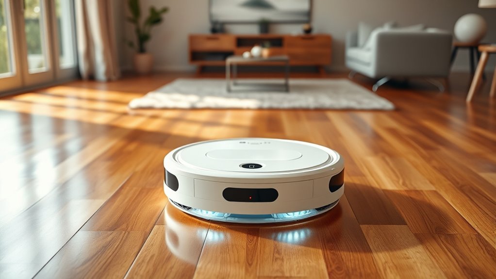 Imagine effortlessly gliding through your home as these robotic mops quietly sweep and scrub, leaving every surface gleaming. With their auto-cleaning bases, maintenance feels like a breeze, so you can relax and enjoy spotless floors without lifting a finger. These smart devices turn your cleaning routine into a seamless dance—clean, refresh, and repeat—making your home feel fresh and inviting every day. Ready to let technology do the hard work for you?
