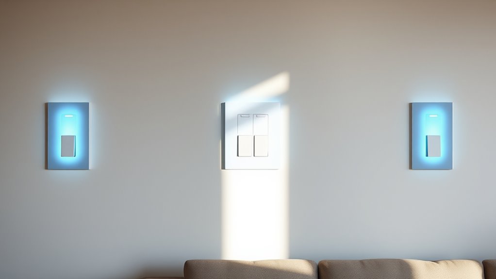 Dimming and brightness options are essential features to contemplate because they directly affect the mood and functionality of your lighting. Not all smart switches support dimming, so it’s important to verify compatibility if adjustable brightness is a priority. These switches typically offer physical buttons or app controls to set preferred light levels and save scenes for quick access. Look for models with smooth dimming capabilities to avoid flickering or buzzing at lower brightness settings. Some switches also include fade or smooth transition effects, providing a more natural and pleasing adjustment when changing light levels. Whether you want to create a cozy ambiance or brighten a workspace, choosing a switch with reliable dimming options guarantees your lighting adapts seamlessly to your needs.