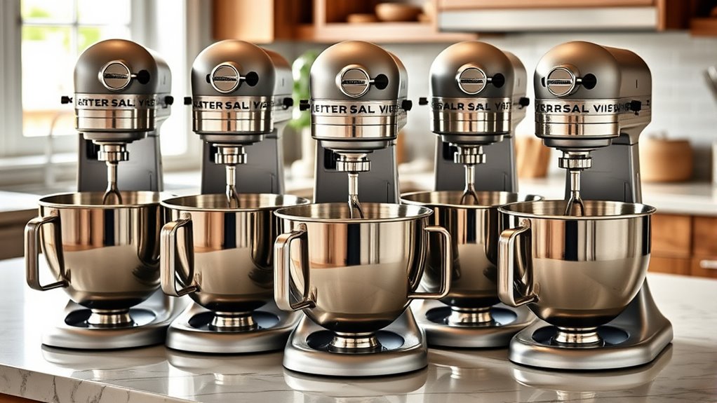 Choosing the right stand mixer can truly elevate your bread-baking game. Did you know that a mixer with at least 1,000W can knead even tough dough effortlessly? That’s why I recommend prioritizing power and capacity. With the right model, you’ll enjoy perfectly kneaded bread every time, making baking less of a chore and more of a joy. Investing in a quality mixer is like giving your baking skills a serious upgrade—happy baking!