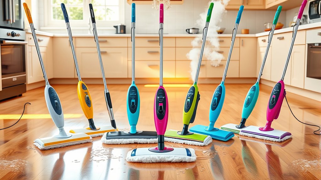 In the domain of home cleaning, a steam mop is your trusty knight, wielding the power of steam to vanquish dirt and grime. With each glide across your floors, it transforms them from dull to dazzling, like a sunrise banishing the night. Choosing the right one is like selecting the perfect sword; it’s essential for conquering messes. So, arm yourself with one of these top steam mops, and watch your home shine brighter than ever.